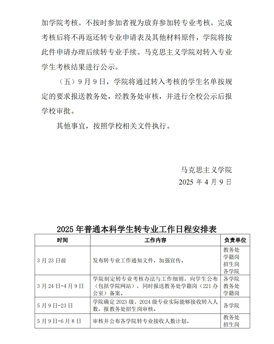 马克思主义学院关于做好2025年本科学生 转专业工作有关事项的通知