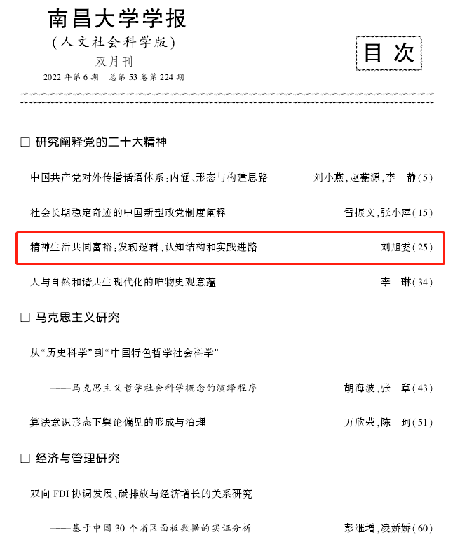 我院教师刘旭雯在《南昌大学学报(人文社会科学版)》发表学术论文《精神生活共同富裕:发轫逻辑、认知结构和实践进路》。