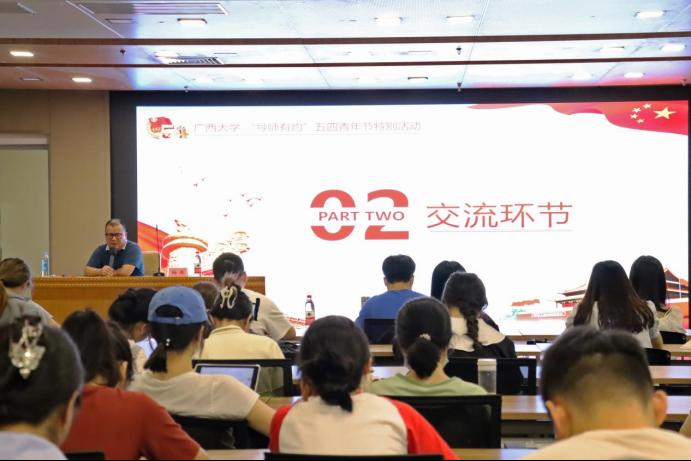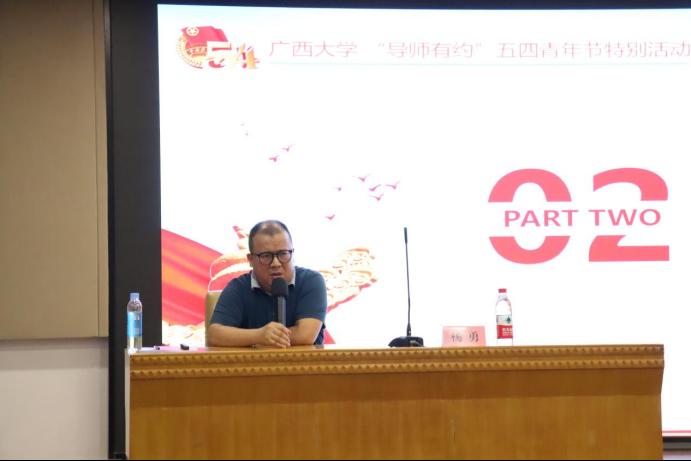 5月15日,以“弘扬五四精神,担当中心任务”为主题的广西大学第117期“导师有约”系列讲座在大学生活动中心三楼会议厅举行。本期活动邀请了马克思主义学院杨勇教授作为主讲人。我院2021、2022级硕士研究生参加了本次活动。