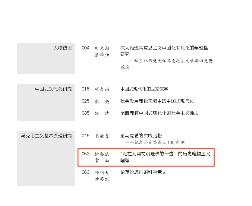我院教师徐秦法、博士研究生常劼在《马克思主义理论学科研究》(2023年第2期)上发表理论文章《站在人类文明进步的一边”的历史唯物主义阐释》。