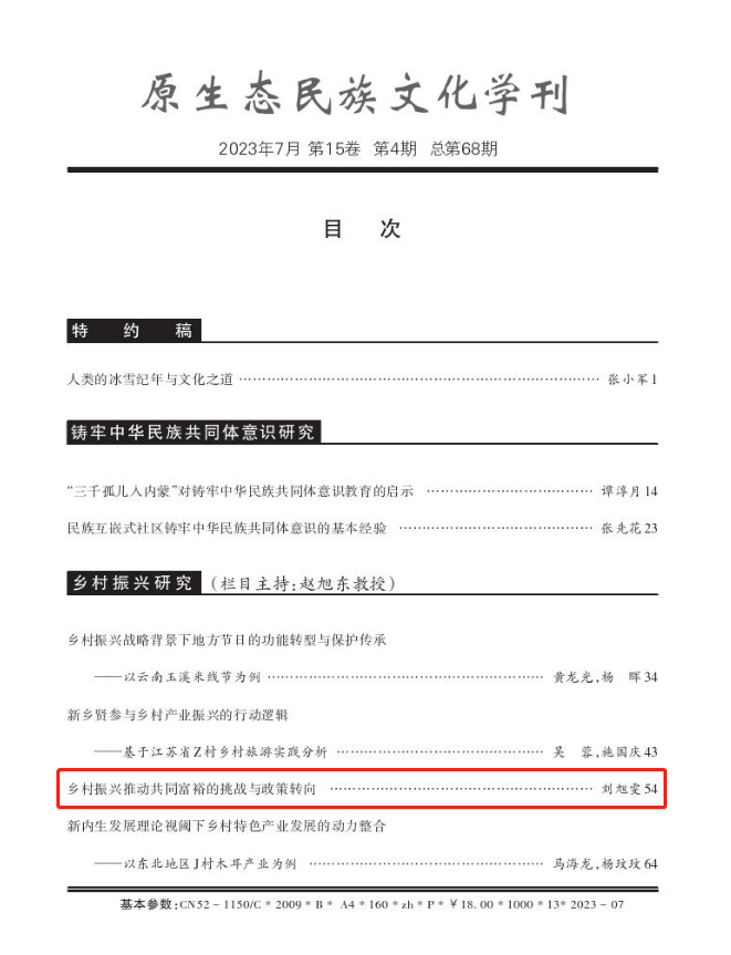 我院教师刘旭雯在《原生态民族文化学刊》(2023年第15卷第4期)上发表理论文章《乡村振兴推动共同富裕的挑战与政策转向》。