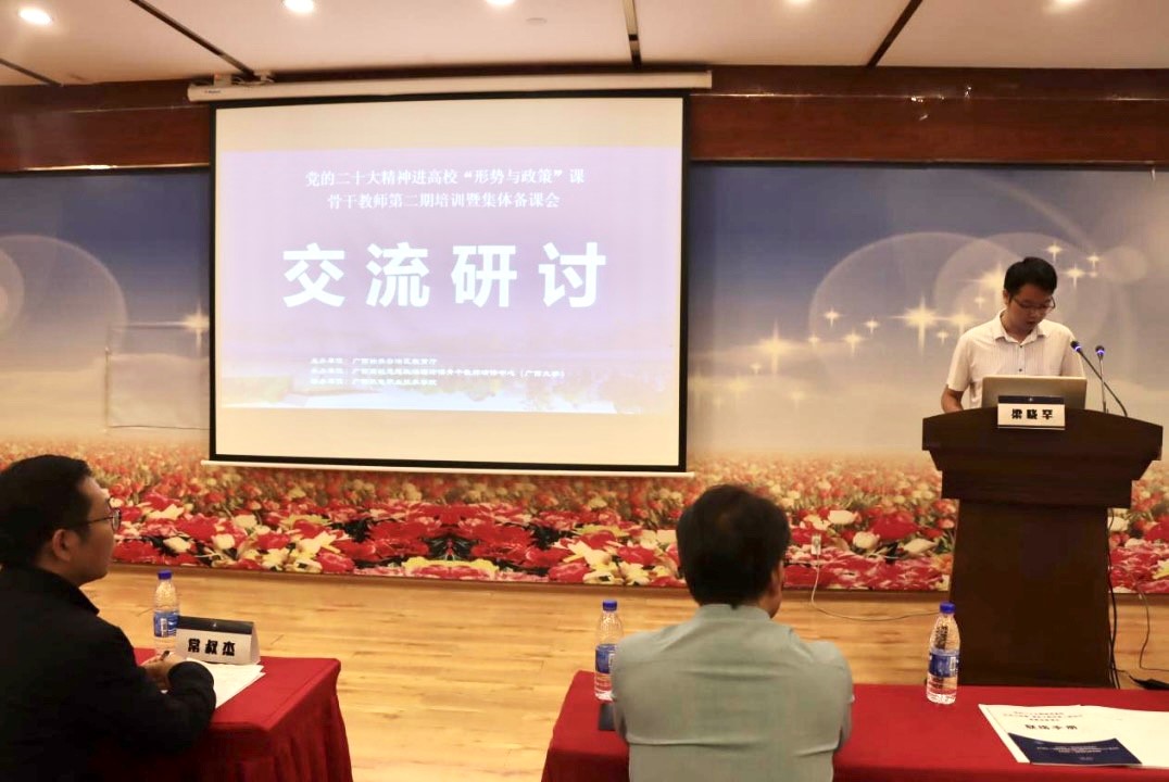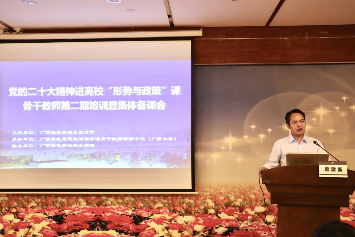 为全面贯彻党的教育方针,进一步加强我区高校形势与政策课教师队伍建设,落实立德树人根本任务,由自治区教育厅主办,广西高校思想政治理论课骨干教师研修基地(广西大学)承办,广西机电职业技术学院协办的党的二十大精神进高校“形势与政策”课骨干教师第二期培训暨集体备课会于10月28日—30日在广西柳州举办。