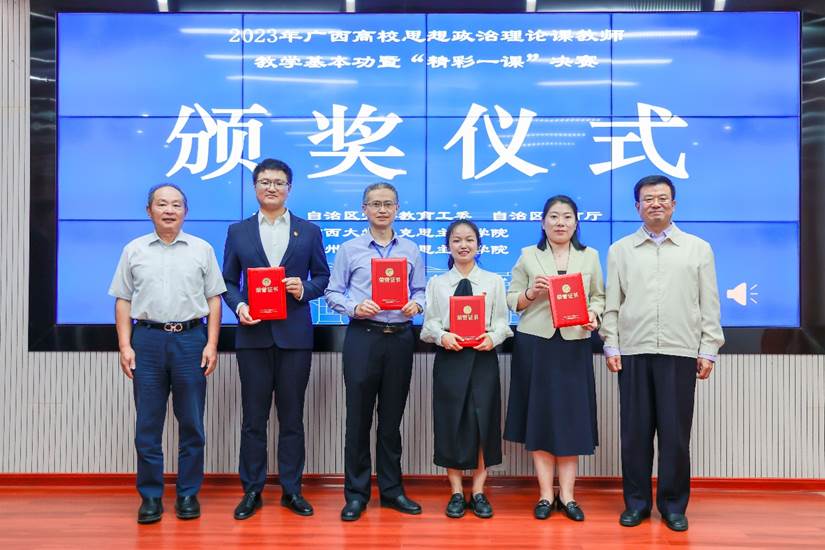11月1日,广西教育厅公布了2023年广西高校思想政治理论课教师教学基本功暨“精彩一课”比赛获奖名单,我院教师磨胤伶、粟远辉、蓝波涛喜获特等奖,廖维晓、梅洁老师喜获一等奖。