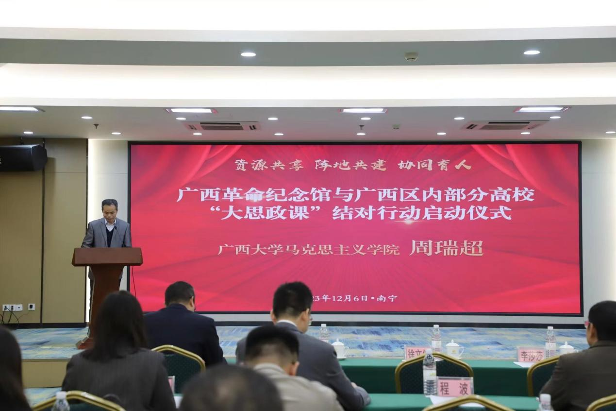 为传承红色基因,赓续共产党人精神血脉,弘扬伟大建党精神,12月6日,广西革命纪念馆与广西区内11所高校开展“大思政课”结对行动,自治区退役军人事务厅和各个院校相关领导出席仪式。我院周瑞超书记出席本次启动仪式,与广西革命纪念馆签订了共建“大思政课”实践教学基地协议。