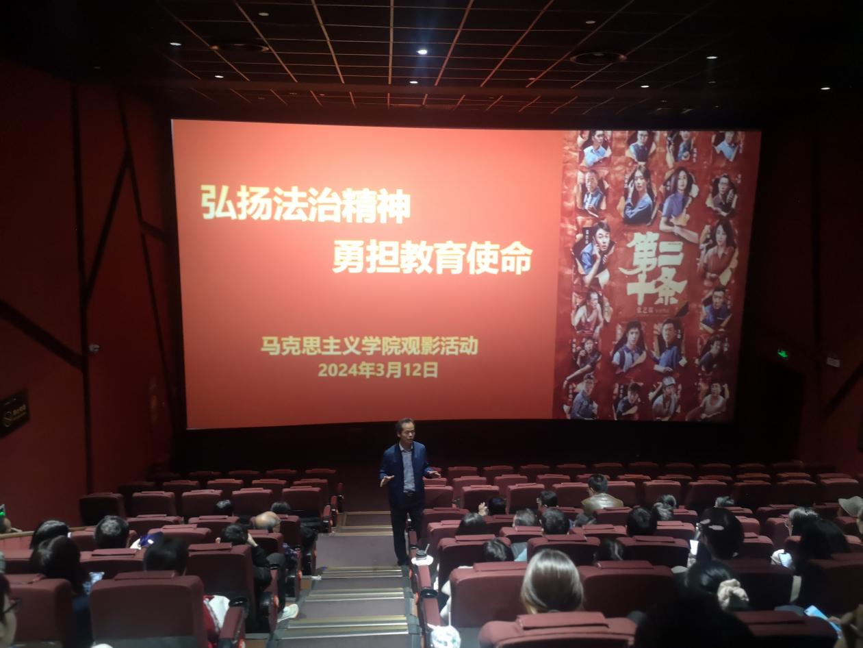 为深入学习贯彻习近平法治思想,进一步弘扬法治精神,传递法治理念,结合学校女教职工普法宣传活动的要求,学院于3月12日下午组织全院教职工开展“弘扬法治精神 勇担教育使命”为主题的集体观影活动,教职工们观看了近期热播的《第二十条》。