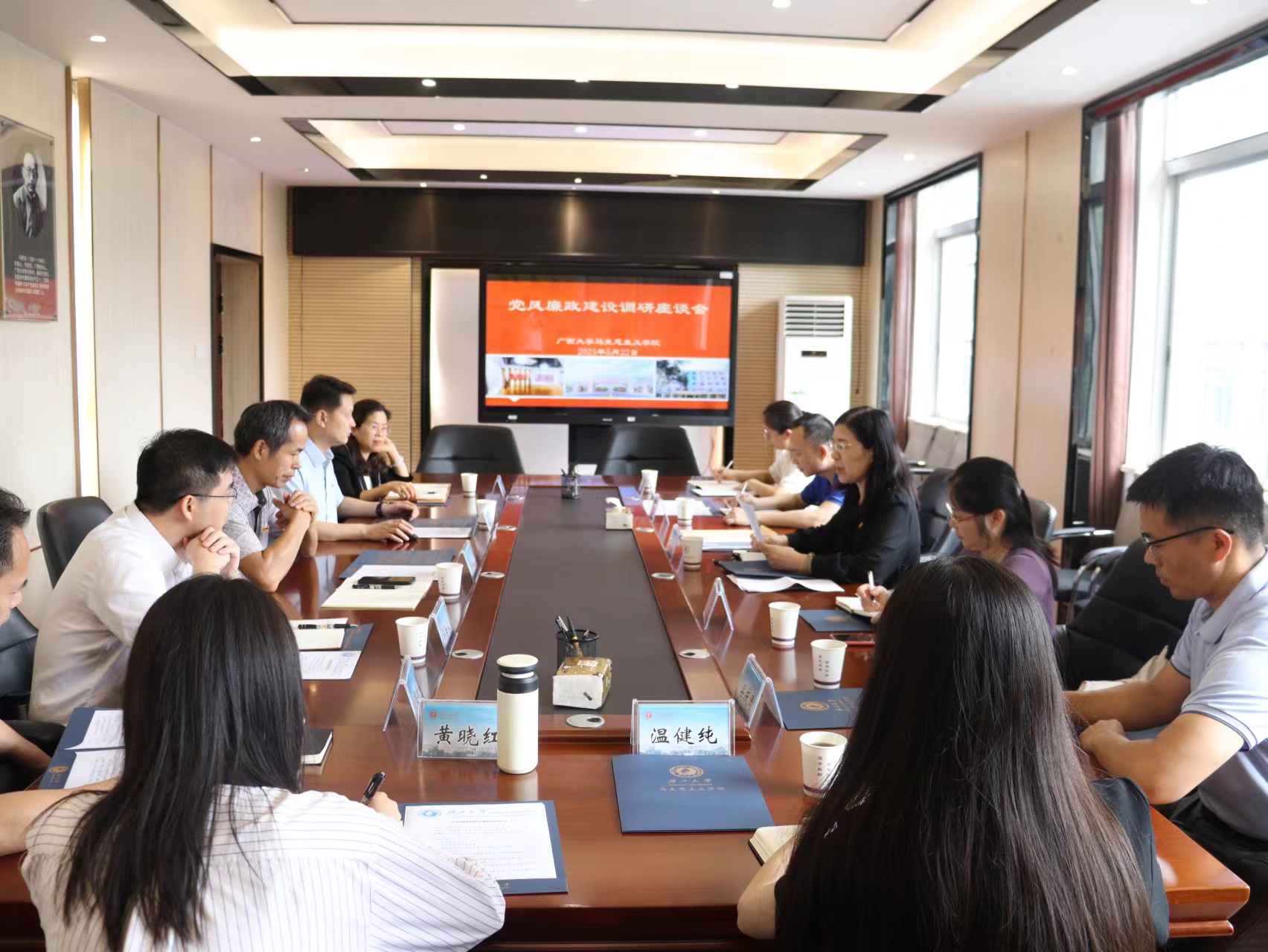 5月22日,校党委副书记、自治区纪委监委驻广西大学纪检监察组组长、纪委书记金顺南带队到我院调研党风廉政建设工作。学院党委书记周瑞超、院长徐秦法等全体班子成员陪同调研。