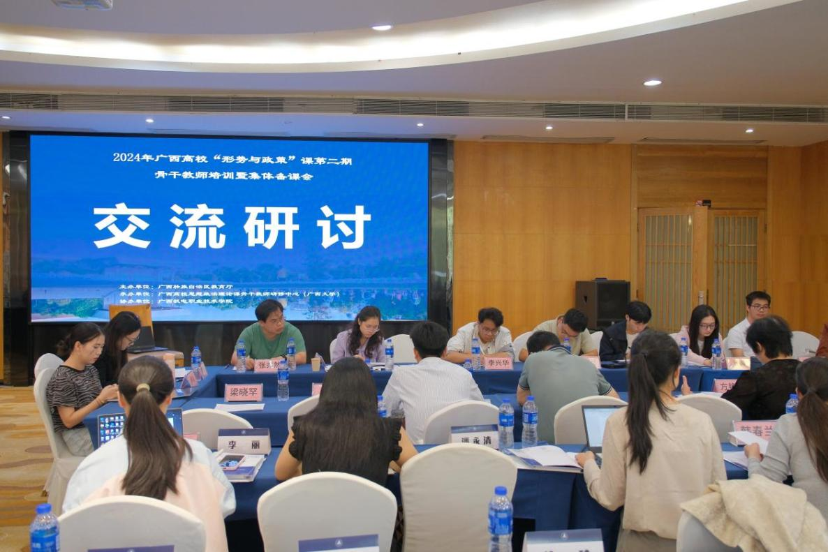 此外,本次培训还安排了交流研讨环节,参会学员分为四个小组,围绕“如何将坚持和发展中国特色社会主义的生动实践和重要成果转化为‘形势与政策’课教学案例的具体方法、经验及成果”等主题开展交流研讨。