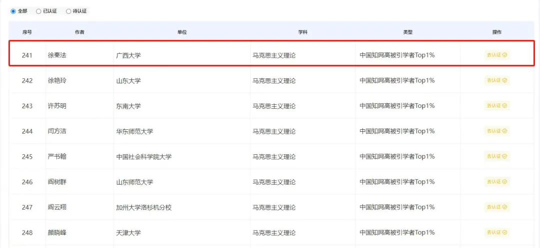 近日,备受学术界瞩目的“2024中国知网高被引学者”名单在网上预发布。我院徐秦法教授成功入选马克思主义理论学科高被引学者Top1%名单。