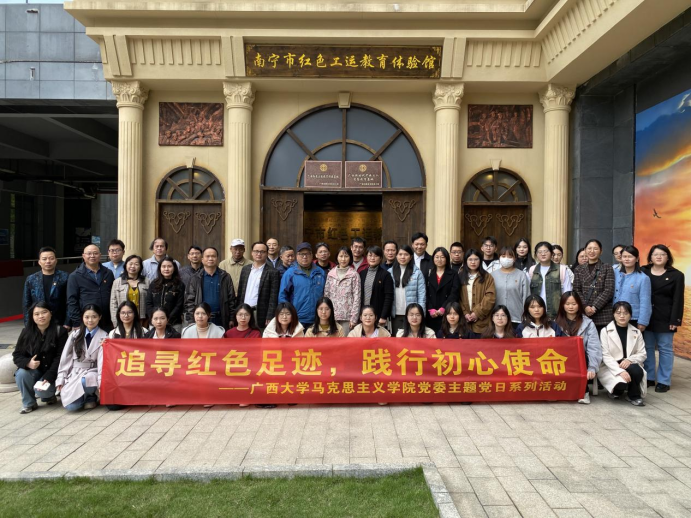 为确保本学期为深入学习贯彻党的二十大精神、党的二十届三中全会精神,传承红色基因,弘扬工运精神,进一步增强党组织的凝聚力和战斗力,3月18日,我院党委组织师生在南宁市红色工运教育体验馆开展“追寻红色足迹,践行初心使命”主题党日活动暨工会活动。