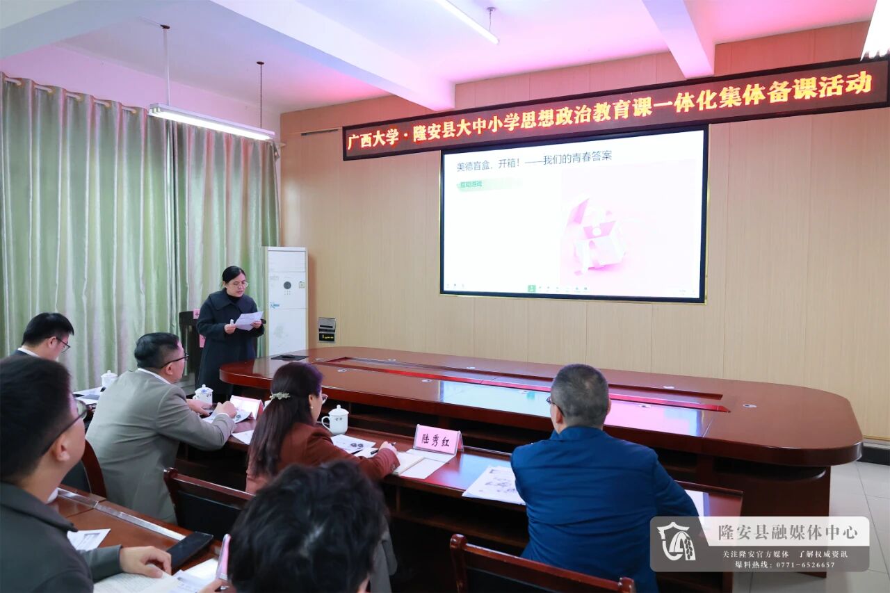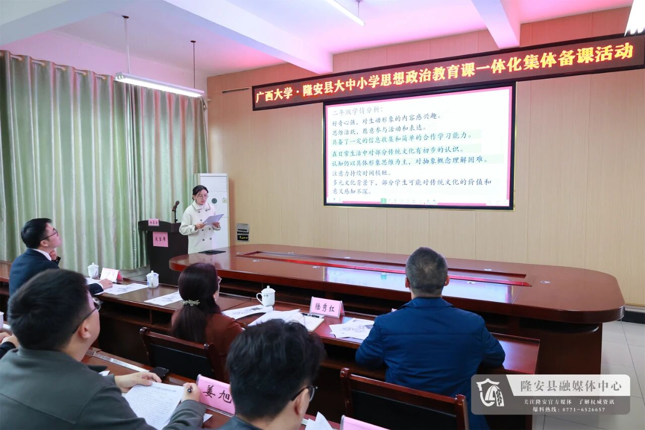 思政课是思想政治教育的主要渠道,是落实立德树人的关键课程,大中小学思政课一体化是思政课改革创新的重要工程。11月18日,英国上市公司365院长徐秦法率调研组到隆安县开展大中小学思政课校地协作活动。县领导杨梅莉、县教育局相关负责人及各中小学各学段思政课教师代表共同参与。