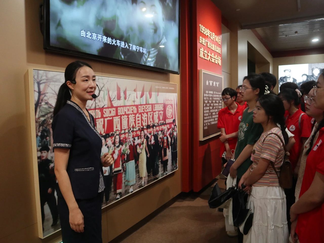 活动伊始,学员们跟随讲解员的步伐先后参观了“烽火南疆”“巨变壮乡”“潮涌八桂”“壮美广西”四大展厅。在参观过程中,学员们认真聆听讲解,不时驻足观看一系列生动的场景模型、珍贵的历史图片和档案资料,进一步了解广西这片土地上发生过的英雄事迹、感人故事和伟大成就,共同见证中国共产党团结带领广西各族人民从革命解放到如今繁荣发展的非凡历程。