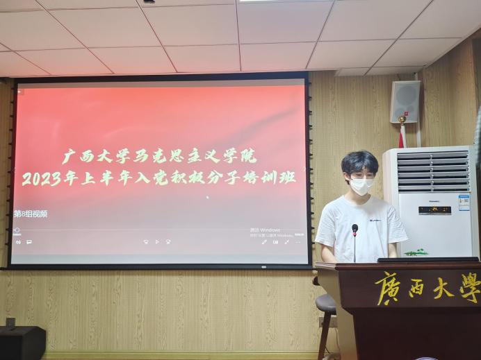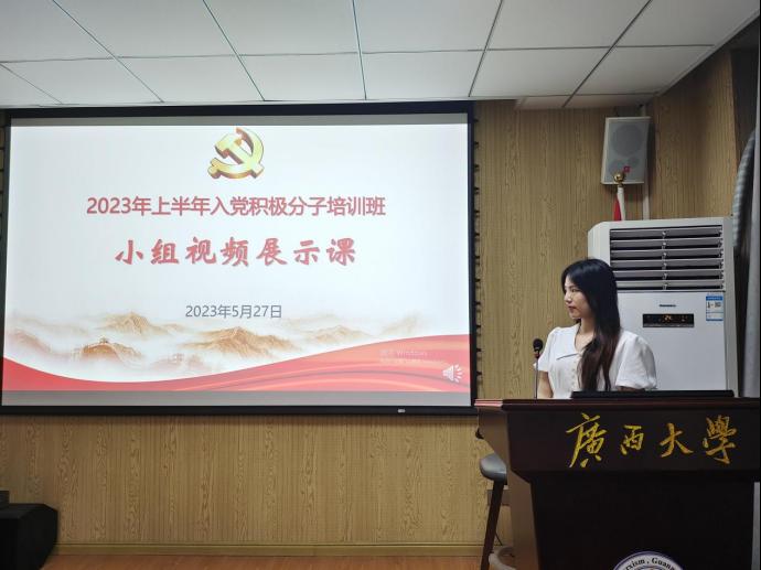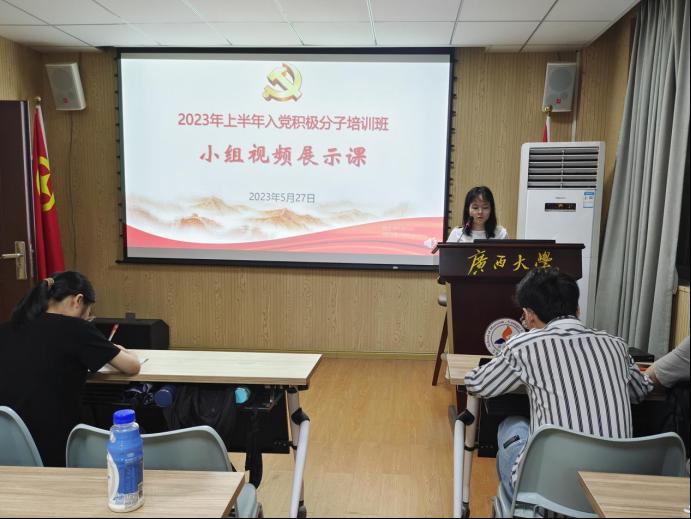 为进一步加强对入党积极分子的培养与教育,不断提高入党积极分子的理论水平与党性修养,5月27日,广西大学党委党校马克思主义学院分校入党积极分子培训班组织开展小组视频展示活动。活动由学生党建工作委员会积极分子培训部梁玉媚主持。