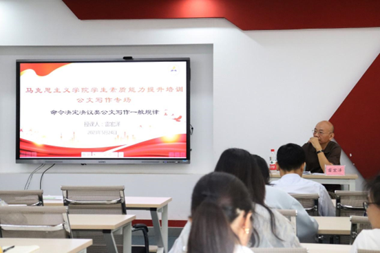 培训会上,雷老师首先强调了公文写作对马克思主义学院学子的重要意义。随后,雷老师从多方面具体介绍了命令类公文、决定类公文以及决议类公文写作的一般规律。