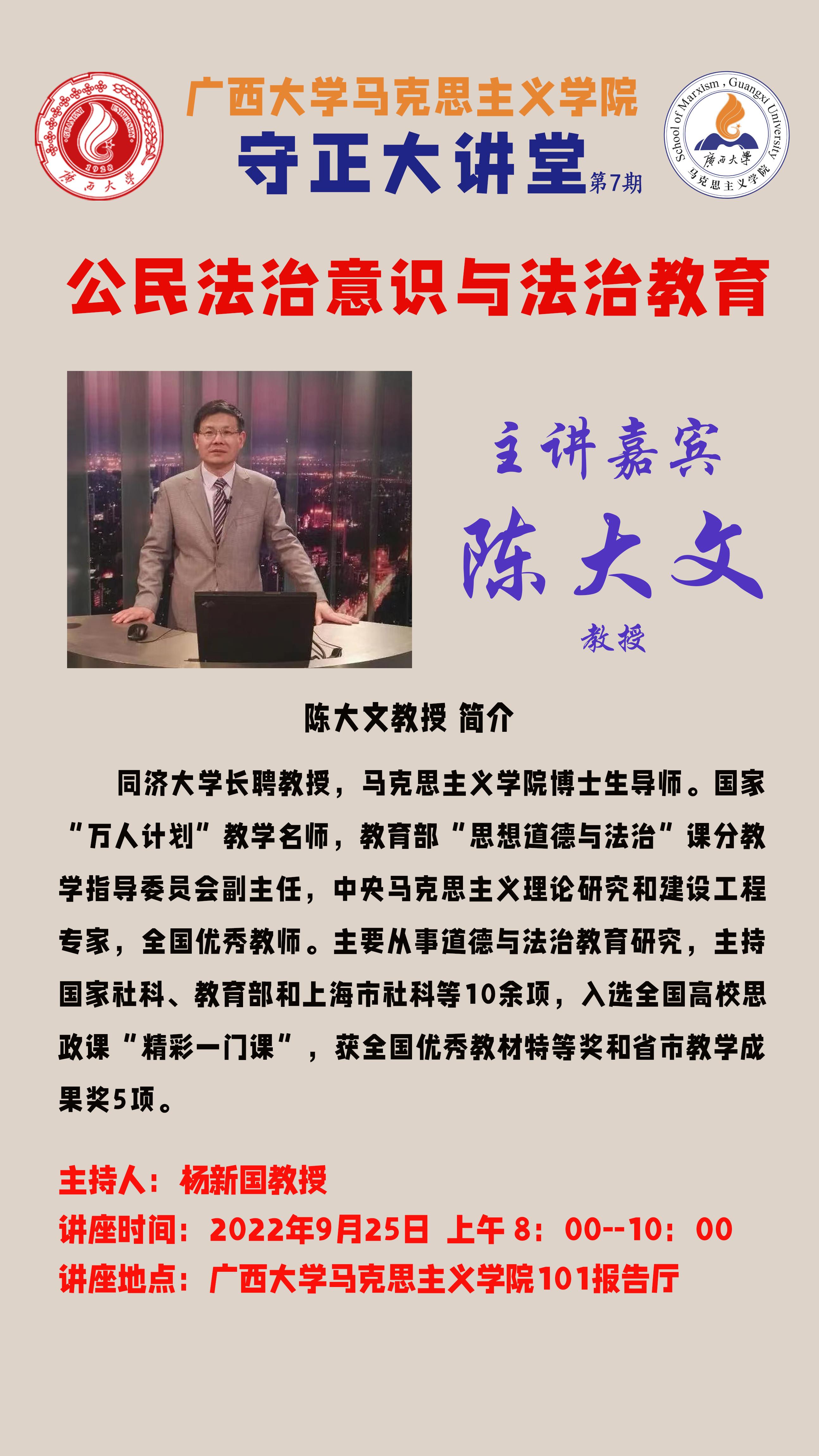守正大讲堂 第7期||公民法治意识与法治教育